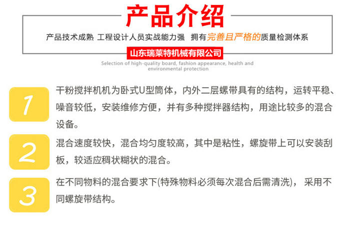 該設備為全自動干粉砂漿攪拌機,整機四角加上料計量,適合多種物料混合的攪拌,設定好斤稱之后,物料由提升機上料,斤稱達到自動停止,然后接著上第二種物料,以此類推,計量準確,省時省力;出料系統設計也是電腦計量裝置,無需人工二次稱重,閥口袋包裝,無需再次封口,出料速度快,4秒一袋,1人即可操作,省時省力;攪拌機機身為臥式U型筒體,內部由內外兩層螺帶交錯布置,攪拌均勻,混合速度快,5至8分鐘即可攪拌均勻,出料可根據不同物料的實際需求定做多個出料口。